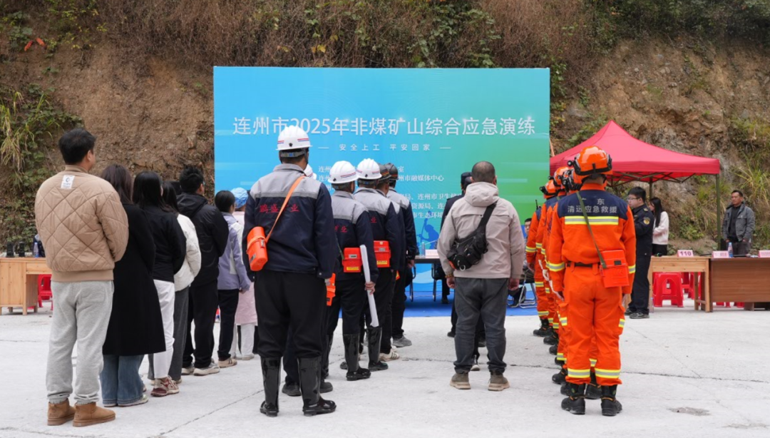 本次演练由连州市安全生产委员会办公室主办,连州市西江镇人民政府、连州市融媒体中心、连州市鹏盛矿业有限公司承办。市委宣传部、市公安局、市卫生健康局、市应急管理局、市自然资源局、市住房和城乡建设局、清远市综合应急救援中心、清远市生态环境局连州分局共同参演。